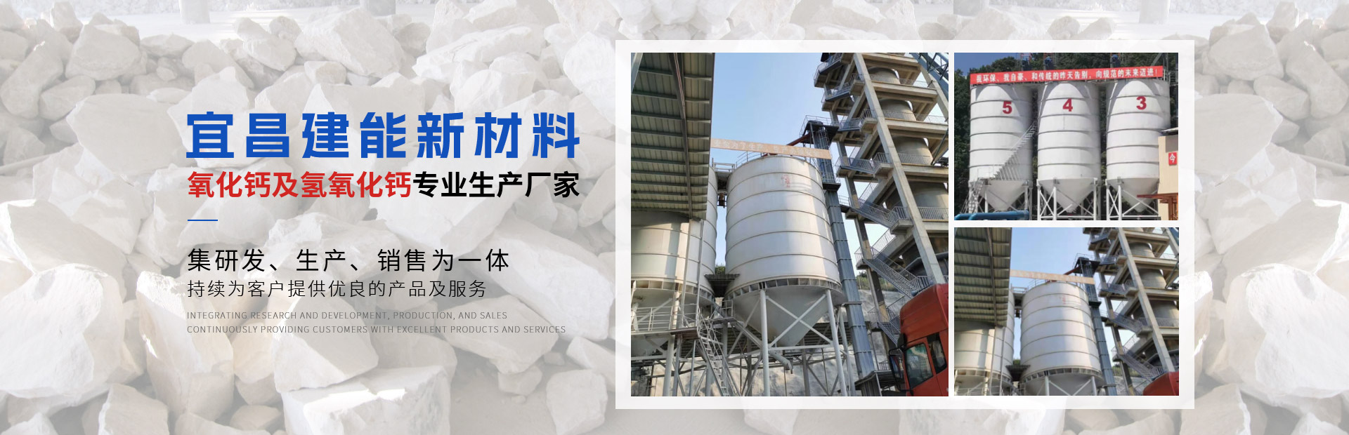 宜昌建能新材料有限公司 地址位于湖北省宜都市姚家店鎮(zhèn)油榨坪村二組,交通便利。我們公司是一家專業(yè)從事石灰研發(fā)、生產(chǎn)、銷售為一體的高科技生產(chǎn)型企業(yè)。公司采用優(yōu)良石頭資源,出產(chǎn)的石灰品質(zhì)優(yōu)良,主要經(jīng)營產(chǎn)品有石灰石、石灰塊、石灰石粉、氧化鈣、氫氧化鈣、母料專用灰鈣粉、建筑用石、方解石粉、重晶石粉等。 公司生產(chǎn)的石灰、碎石等產(chǎn)品,以優(yōu)良的產(chǎn)品質(zhì)量,獲得了不少客戶的信任。 公司秉承“誠信、優(yōu)質(zhì)、共贏”的經(jīng)營理念,堅持用戶至上、服務(wù)優(yōu)先原則,用心解除客戶所憂;以科技服務(wù)和好的產(chǎn)品服務(wù)客戶;始終堅持以“想顧客之所想,急顧客之所急”的經(jīng)營理念,不斷前行......